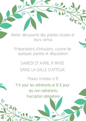 Les samedis 9 Mars, 13 Avril, 11 Mai, et 29 Juin, de 16h à 17h30 dans la salle d'Attegia.