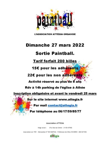 Dimanche 27 Mars sortie paintball. Inscription OBLIGATOIRE avant le 25 mars 2022.
