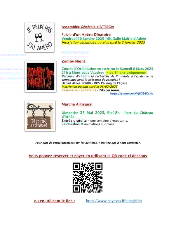 Vous avez désormais la possibilité de régler par carte bancaire en 3X si vous le souhaitez, votre adhésion et vos sorties sur notre page de paiement Payasso