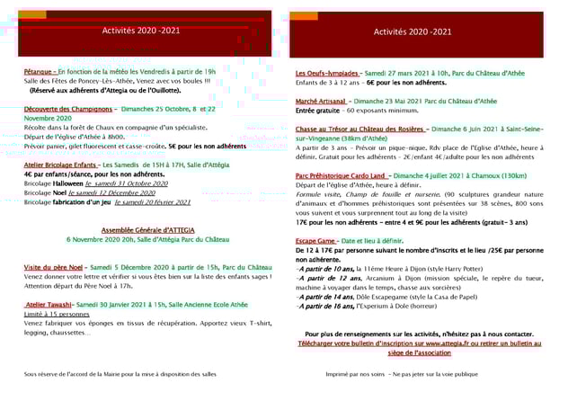 Inscription sur contact@attegia.fr ou dans l'onglet " guide 2021-2022 " ou encore par téléphone.