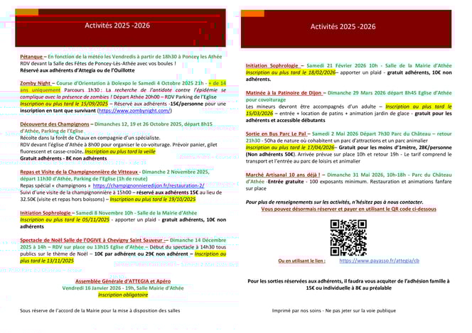 Pour vous inscrire à une activité, imprimer le formulaire d'adhésion ou encore le programme, cliquer sur "GUIDE 2025-2026" sur le colonne de droite.